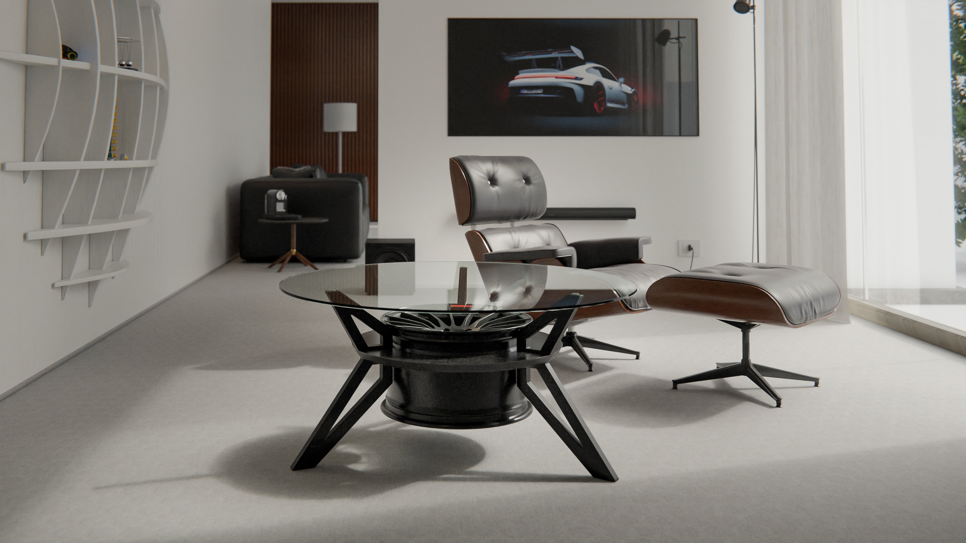 "Dieser Tisch zeigt meine Leidenschaft! Er ist genauso einzigartig wie meine Felge. Ob im Wohnzimmer und in Geschäftsräumen, der Tisch setz ein Zeichen – für Stil und Leidenschaft." - Philipp A. (Einzelanfertigung 2022)